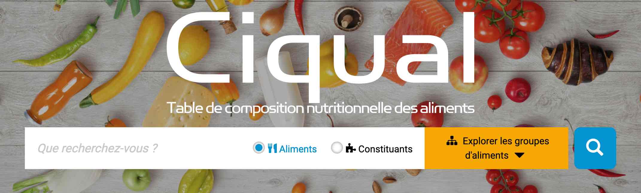 Composition de produits alimentaires (https://ciqual.anses.fr/)