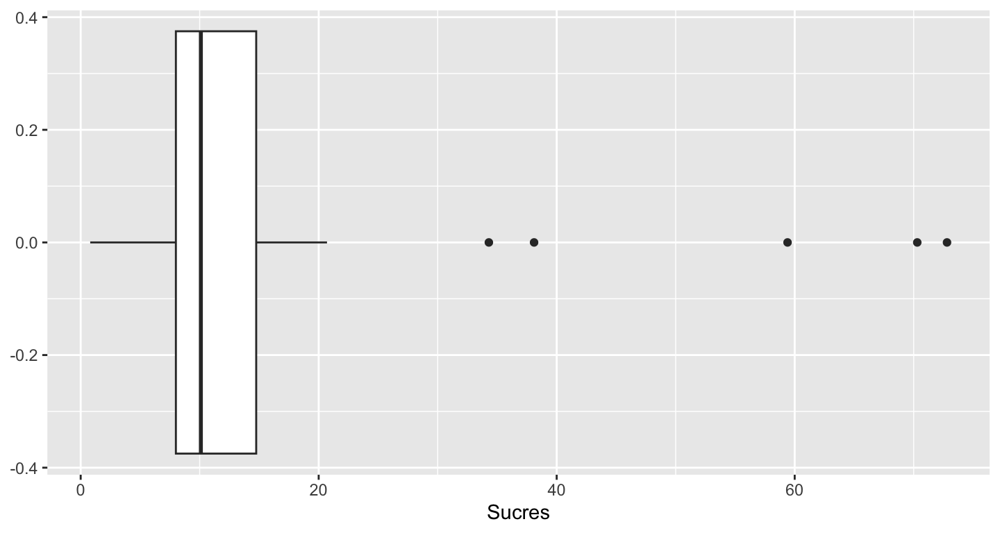 ggplot(data = fruits, aes(x = Sucres)) + geom_boxplot()