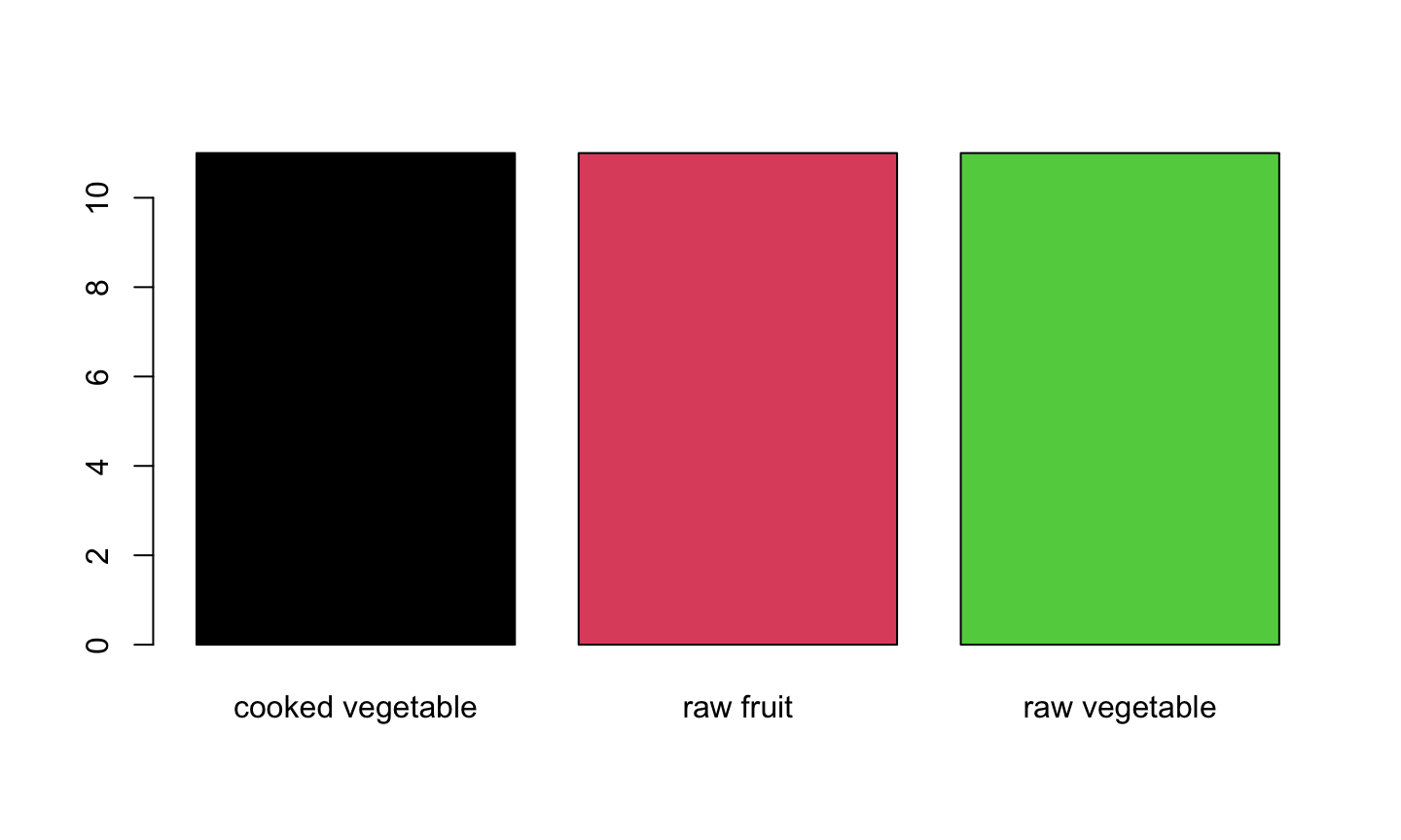 barplot(table(fruveg$group), col = 1:3)
