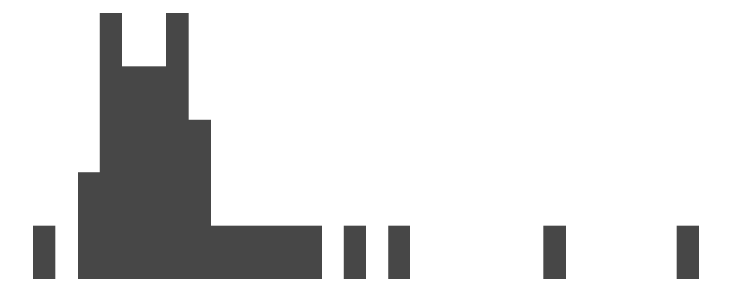 theme_void()ggplot(fruveg, aes(fibers)) + geom_histogram() + theme_void()