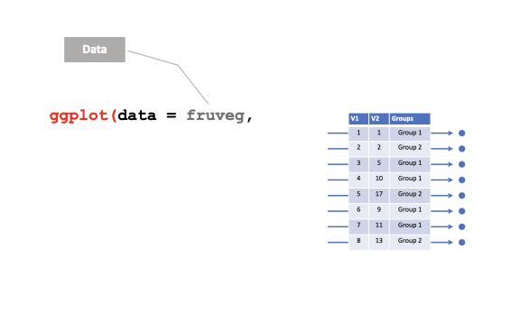 color ou colour : couleur du pointfill : couleur de remplissagesize : tailleshape : formealpha : transparencelinetype : type de lignelabel : étiquettesLorsqu’ils sont appliqués en dehors de la fonction aes(), leur comportement est plus général !