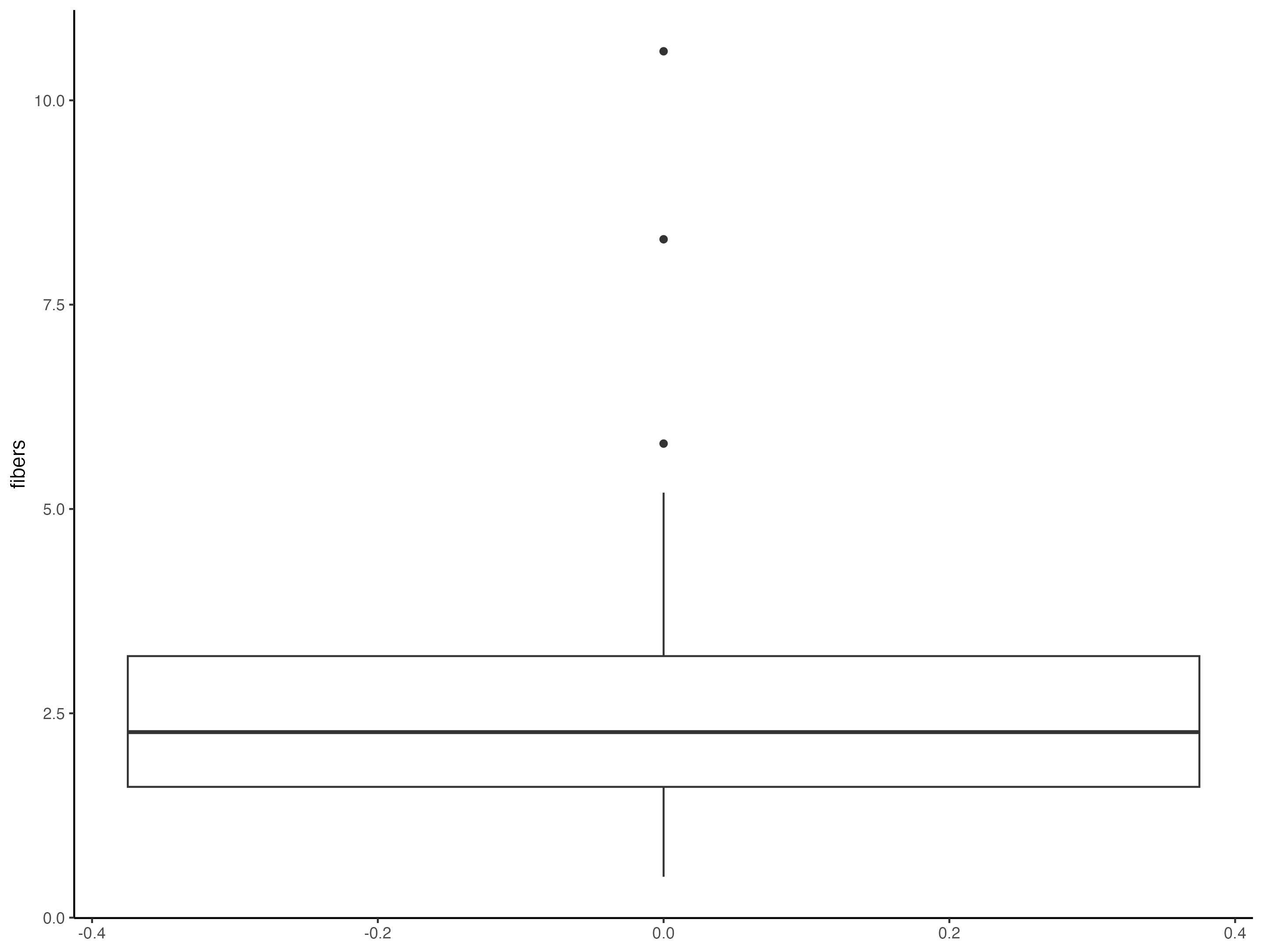 theme_bw avec la commande ?theme_bwggplot(fruveg, aes(fibers)) + geom_boxplot() + theme_***()